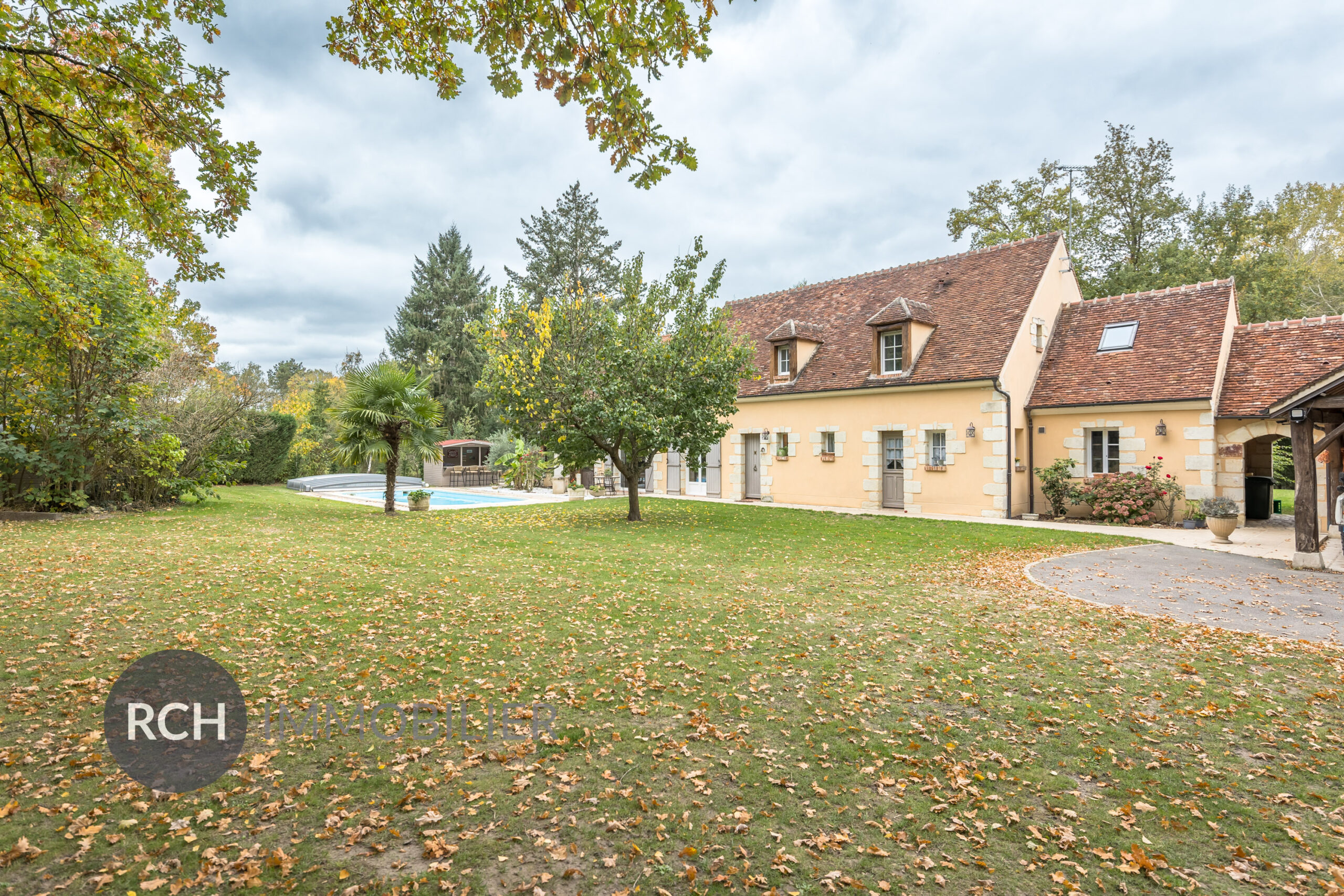 Piscine 10,5×4,5 chauffée par pompe à chaleur avec couverture électrique. Pool House.